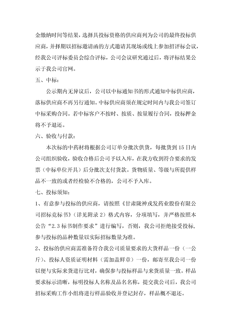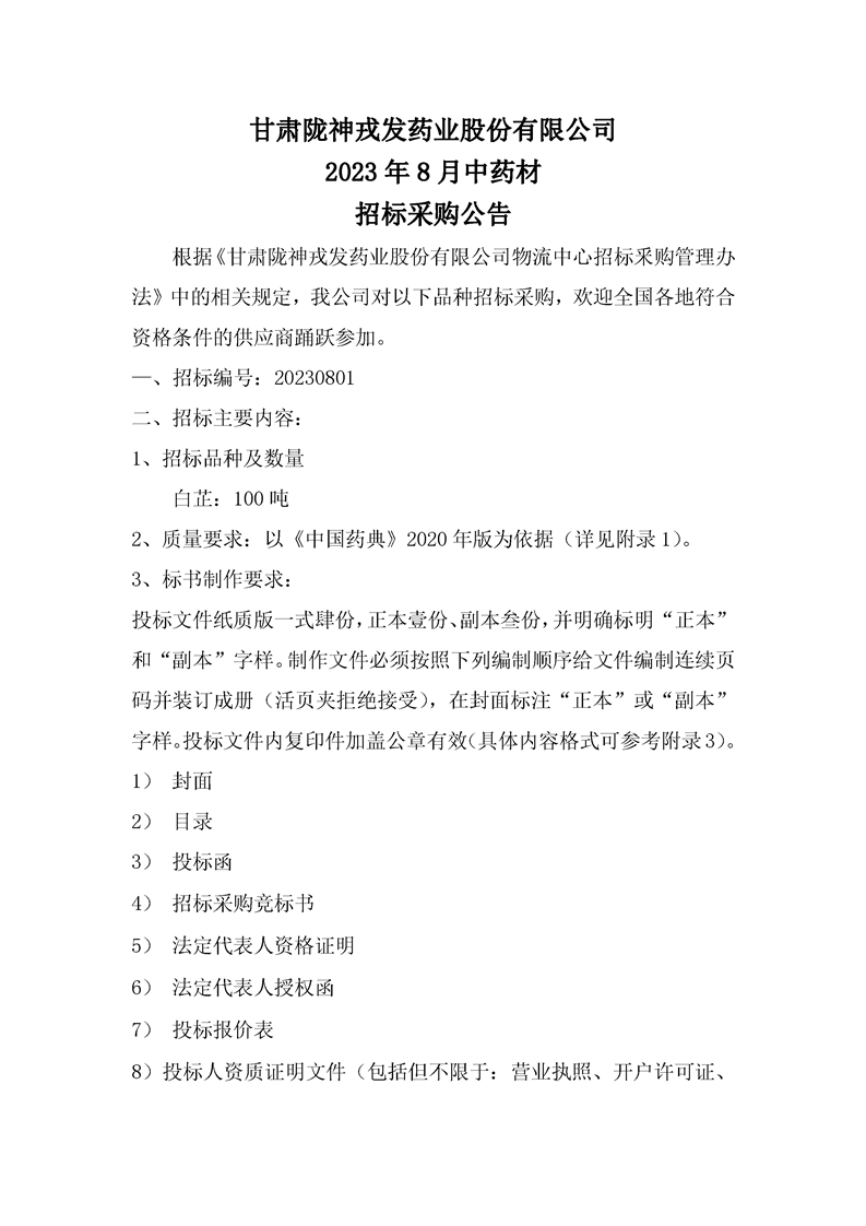 甘肅隴神戎發(fā)白芷招標(biāo)公告方案