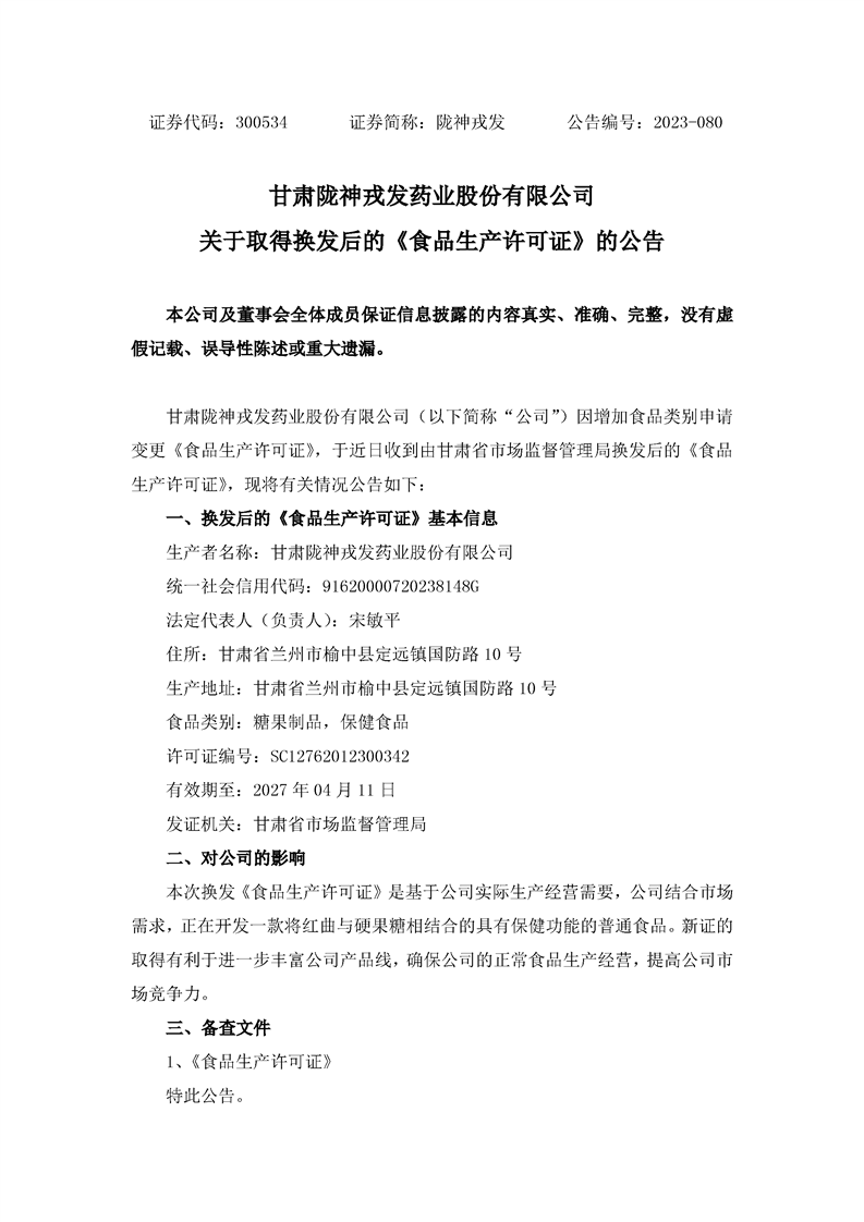 關(guān)于取得換發(fā)后的《食品生產(chǎn)許可證》的公告