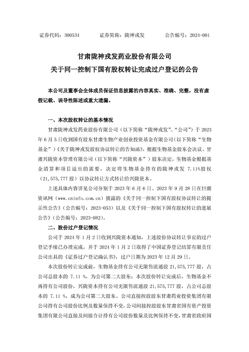 關(guān)于同一控制下國有股權(quán)轉(zhuǎn)讓完成過戶登記的公告