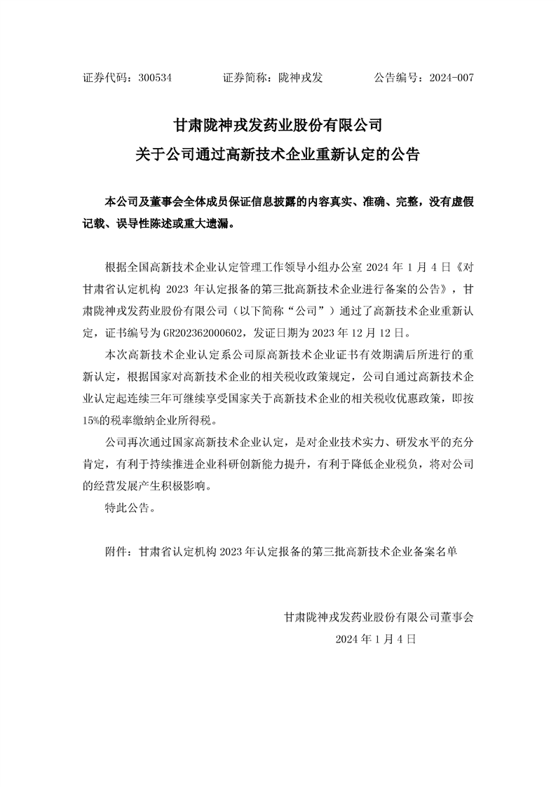 關(guān)于公司通過高新技術(shù)企業(yè)重新認(rèn)定的公告