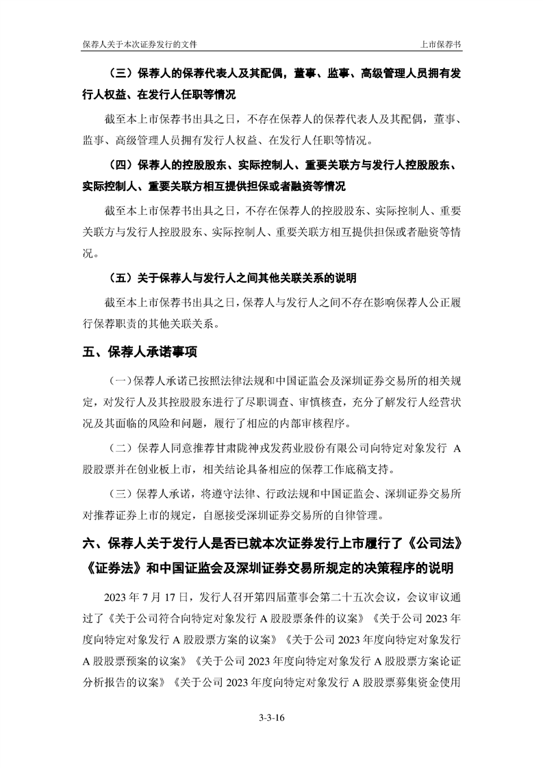 國(guó)泰君安證券股份有限公司關(guān)于甘肅隴神戎發(fā)藥業(yè)股份有限公司向特定對(duì)象發(fā)行A股股票之上市保薦書