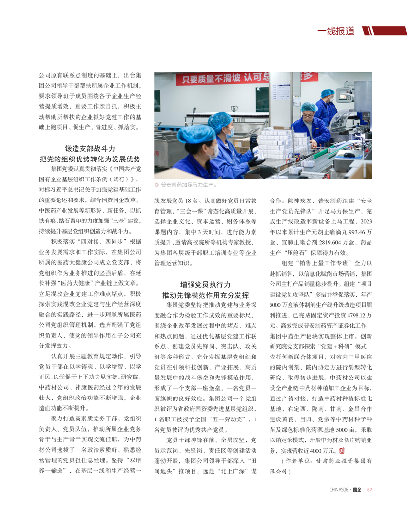 《國企》雜志:甘肅藥業(yè)集團“三力齊發(fā)”推進黨建工作與生產(chǎn)經(jīng)營互促共進