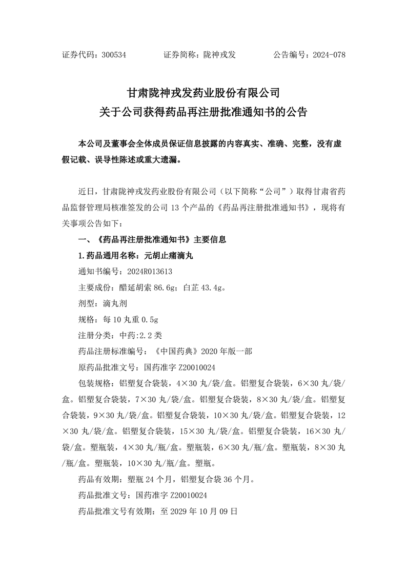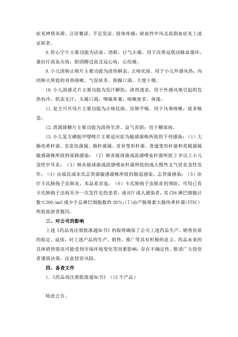 關(guān)于公司獲得藥品再注冊(cè)批準(zhǔn)通知書(shū)的公告