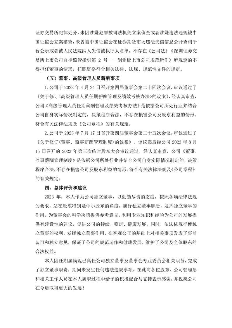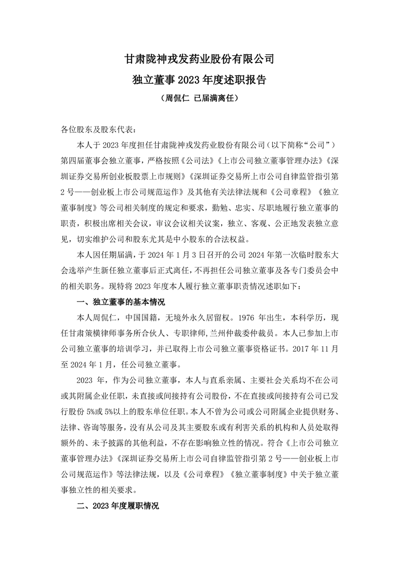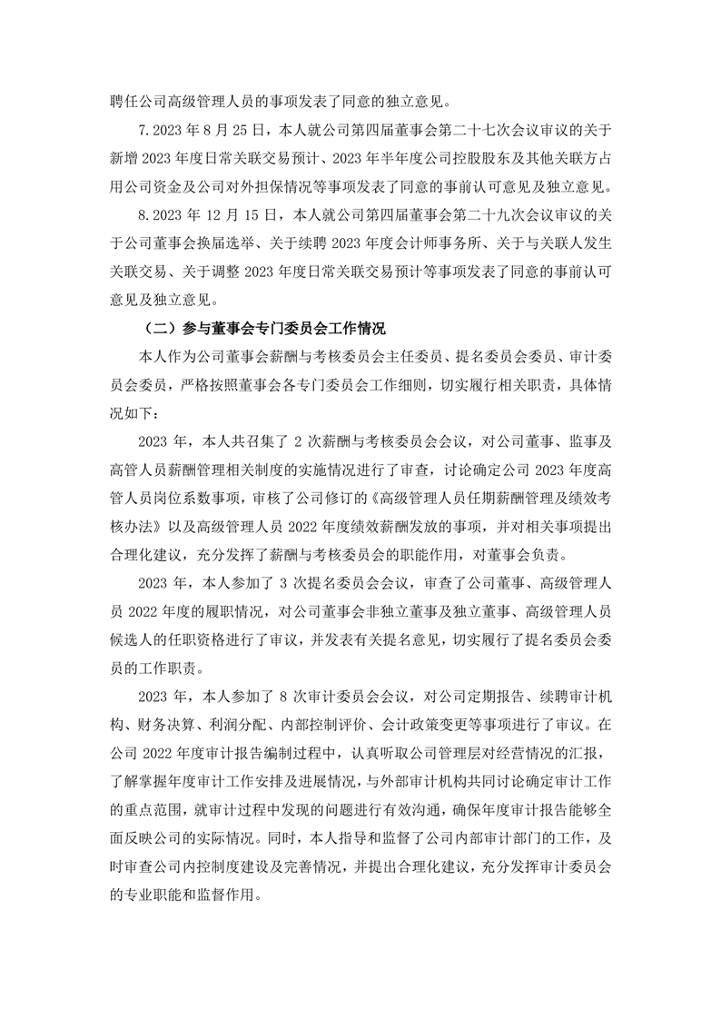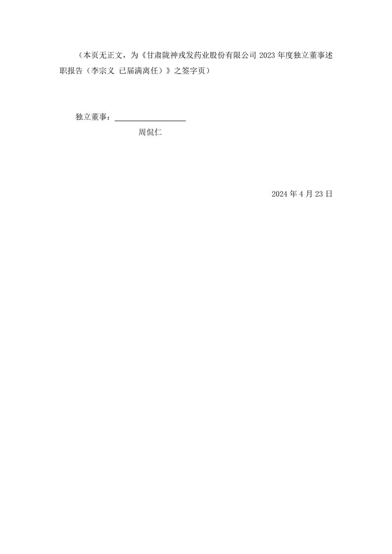 2023年度獨(dú)立董事述職報(bào)告(周侃仁 已屆滿離任)