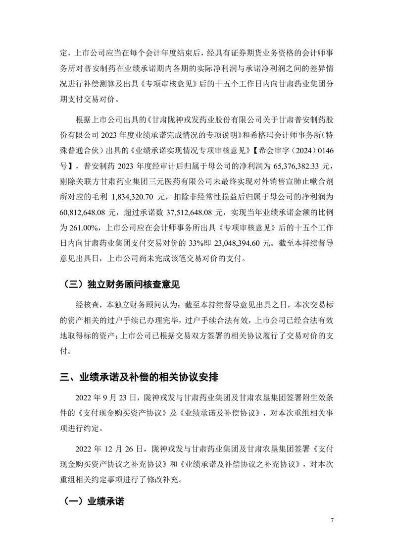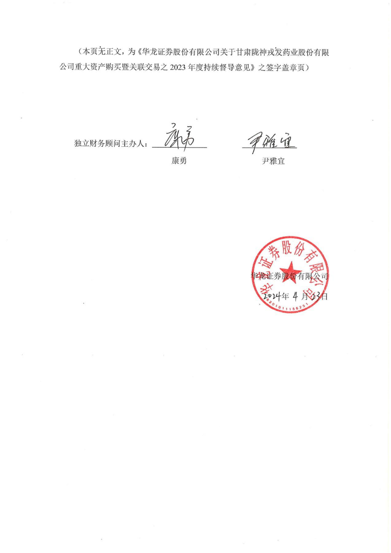 華龍證券股份有限公司關(guān)于甘肅隴神戎發(fā)藥業(yè)股份有限公司重大資產(chǎn)購買暨關(guān)聯(lián)交易之2023年度持續(xù)督導(dǎo)意見