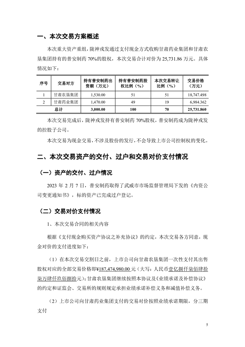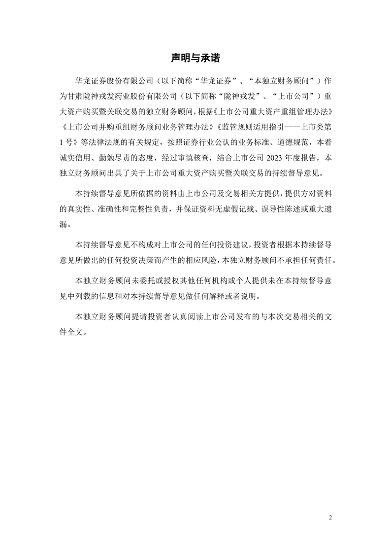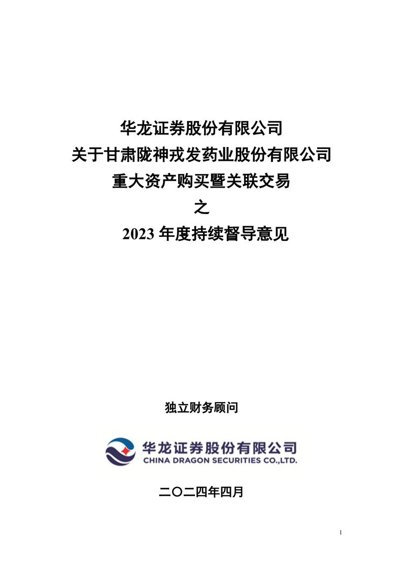 華龍證券股份有限公司關(guān)于甘肅隴神戎發(fā)藥業(yè)股份有限公司重大資產(chǎn)購買暨關(guān)聯(lián)交易之2023年度持續(xù)督導(dǎo)意見(更正后)