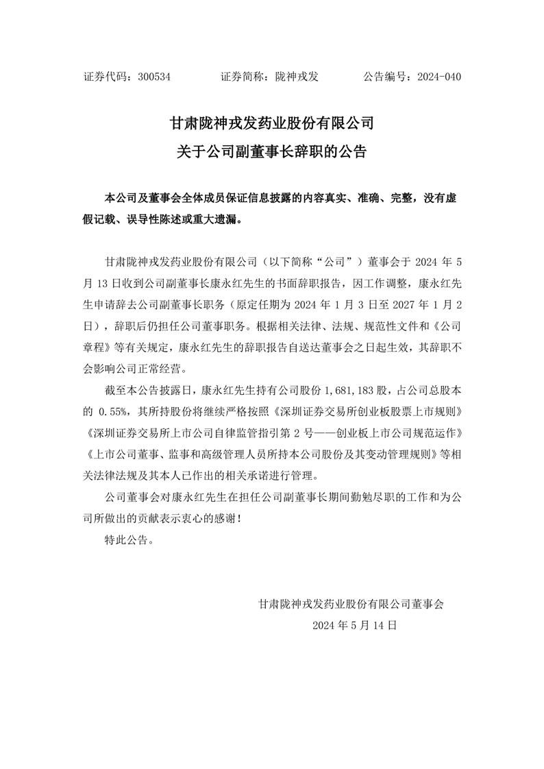 關(guān)于公司副董事長(zhǎng)辭職的公告