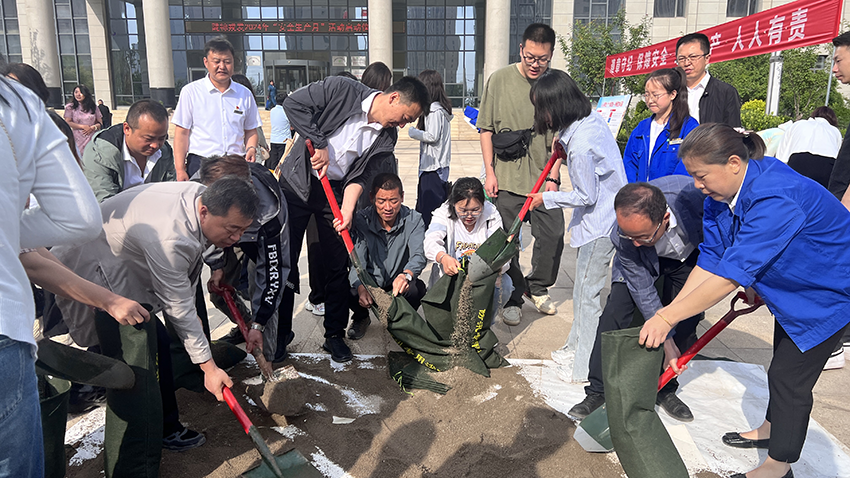 儀式第四項(xiàng):為防汛工作“增磚加瓦”裝沙袋活動(dòng)。