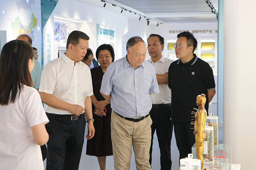 在公司展廳參觀過程中,段金廒教授一一了解了公司特色產(chǎn)品。每到一處,段金廒教授總能結(jié)合自己的研究方向,與大家交流產(chǎn)品的功能特色和處方藥材資源,并饒有興致地現(xiàn)場講解了公司獨(dú)家品種元胡止痛滴丸所用的“延胡索”藥材的產(chǎn)地演變歷史及資源現(xiàn)狀。段金廒教授強(qiáng)調(diào),企業(yè)要注重藥材種子種苗培育和產(chǎn)地管理,從源頭上確保藥品質(zhì)量;要圍繞重大疾病和慢性病,結(jié)合在研的醫(yī)療器械,配套研制中藥類相關(guān)新產(chǎn)品,逐步形成產(chǎn)業(yè)優(yōu)勢。