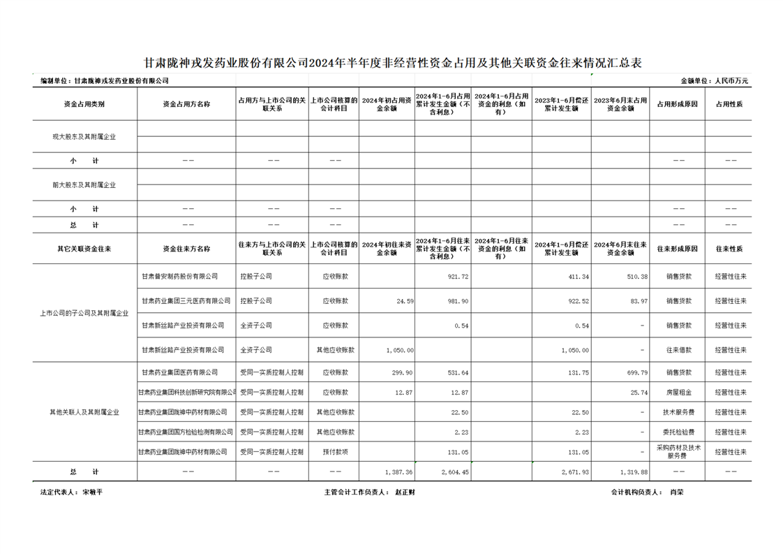 2024年半年度非經(jīng)營性資金占用及其他關聯(lián)資金往來情況匯總表