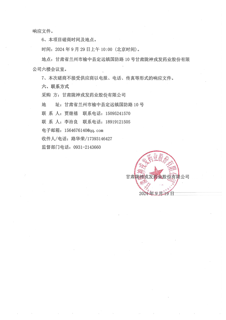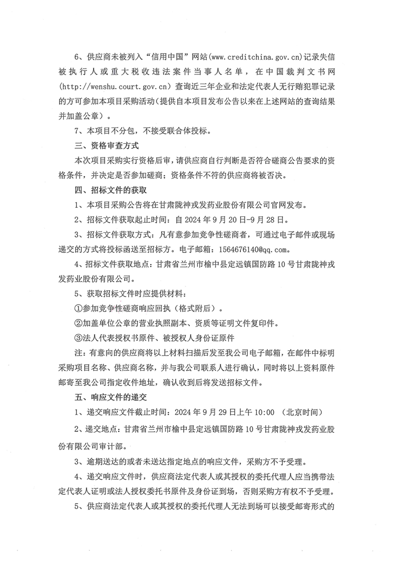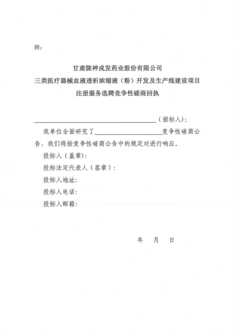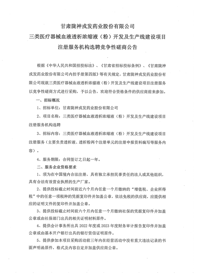 甘肅隴神戎發(fā)藥業(yè)股份有限公司三類醫(yī)療器械血液透析濃縮液(粉)開發(fā)及生產(chǎn)線建設(shè)項(xiàng)目注冊(cè)服務(wù)機(jī)構(gòu)選聘競爭性磋商公告