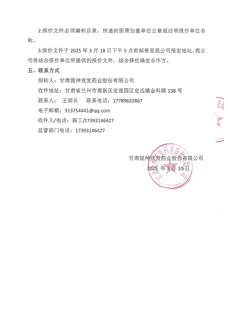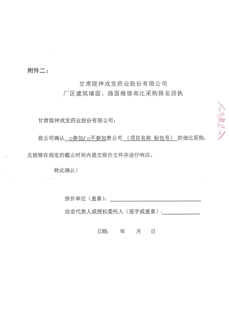 甘肅隴神戎發(fā)藥業(yè)股份有限公司廠區(qū)建筑墻面、路面維修詢比采購公告