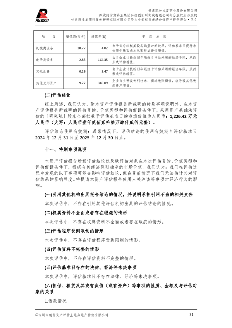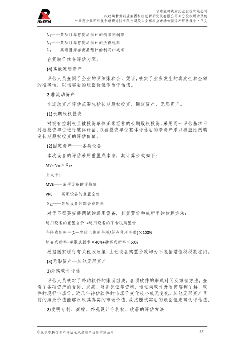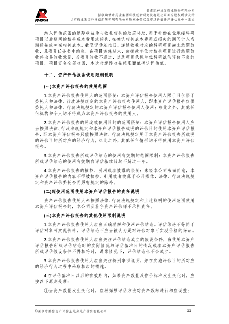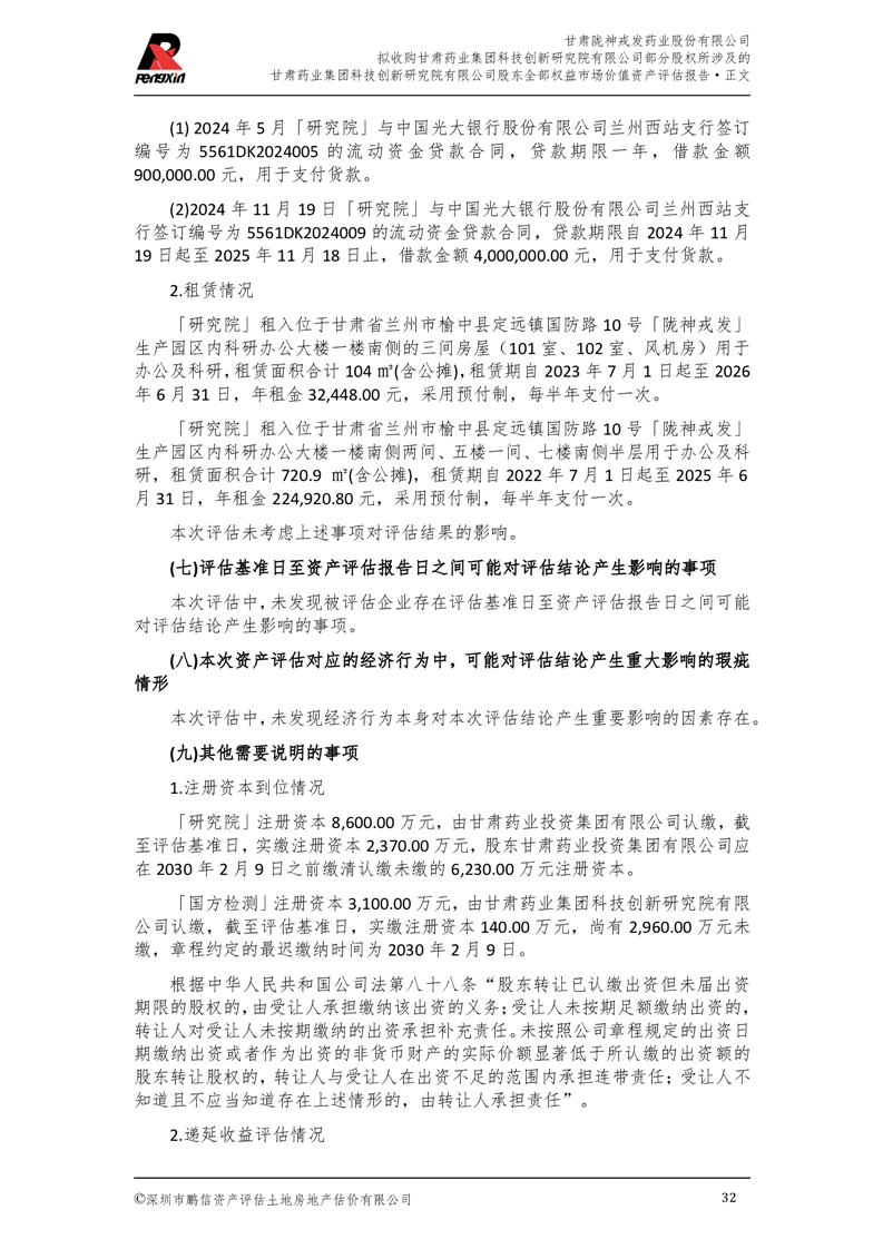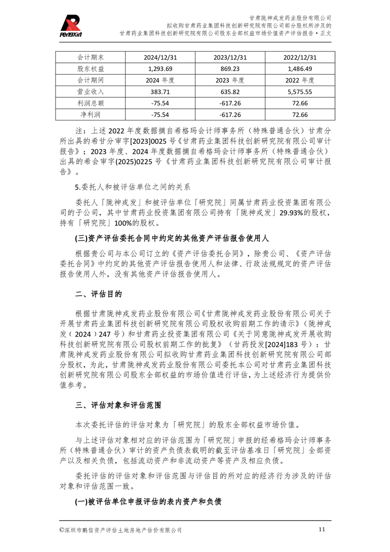 甘肅藥業(yè)集團(tuán)科技創(chuàng)新研究院有限公司股東全部權(quán)益市場(chǎng)價(jià)值資產(chǎn)評(píng)估報(bào)告(鵬信資評(píng)報(bào)字[2025]第S039號(hào))