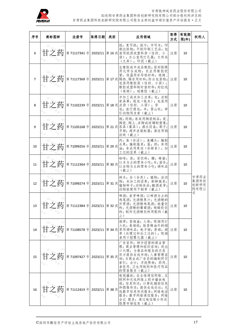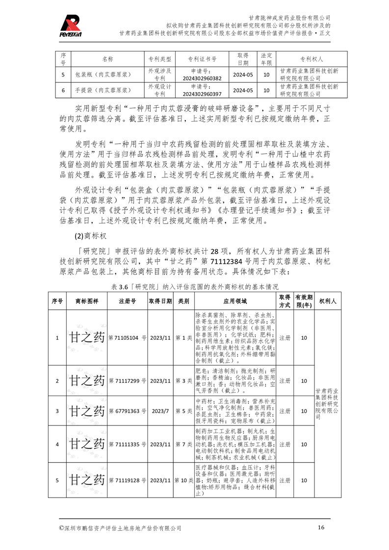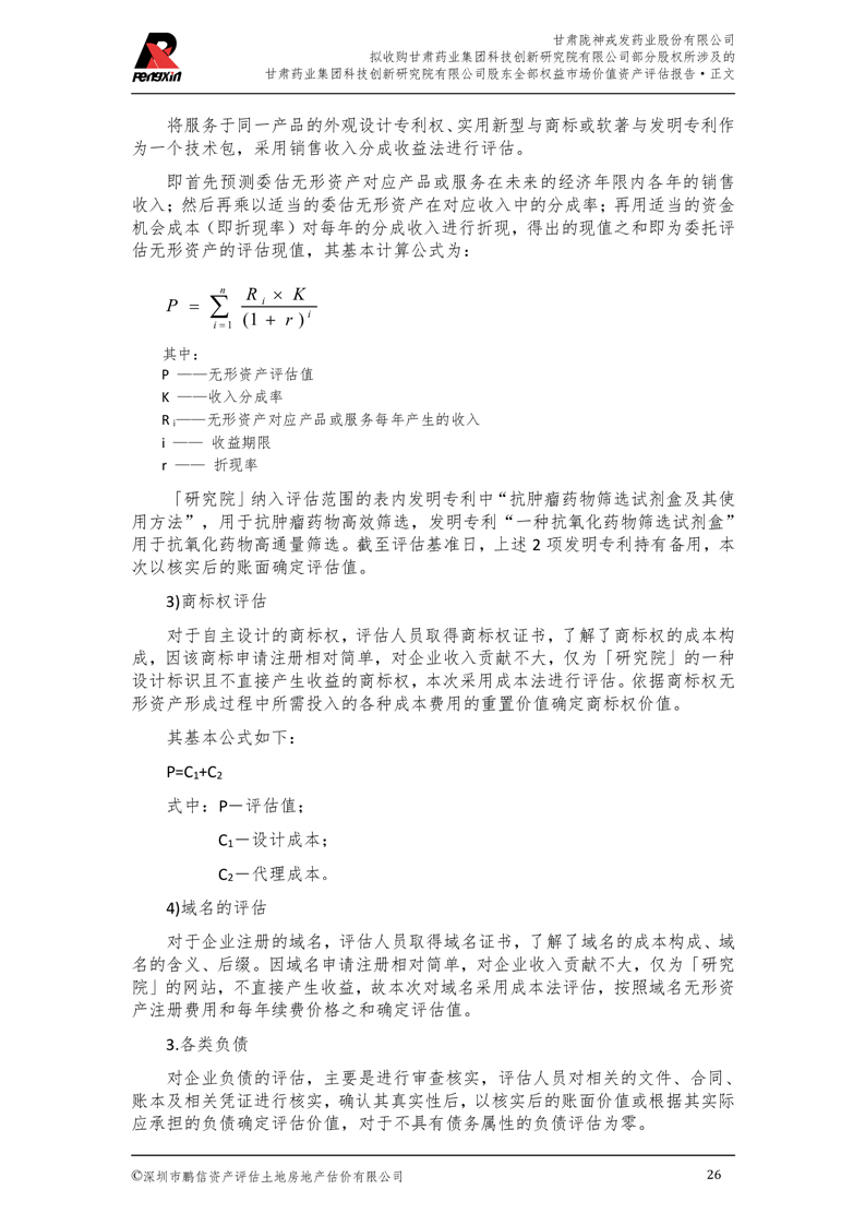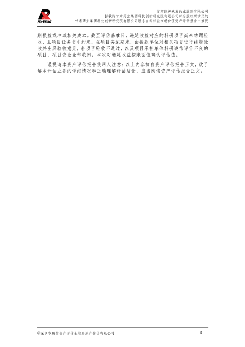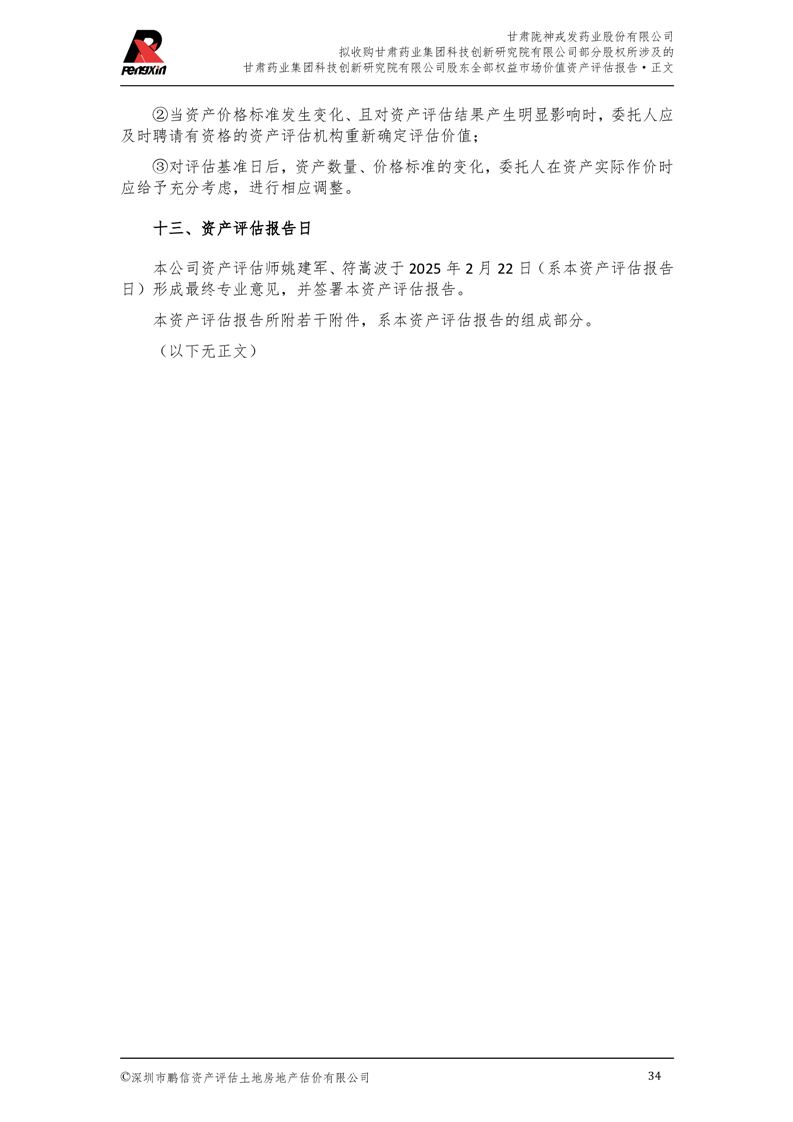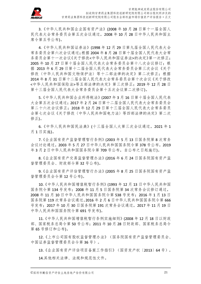 甘肅藥業(yè)集團(tuán)科技創(chuàng)新研究院有限公司股東全部權(quán)益市場(chǎng)價(jià)值資產(chǎn)評(píng)估報(bào)告(鵬信資評(píng)報(bào)字[2025]第S039號(hào))