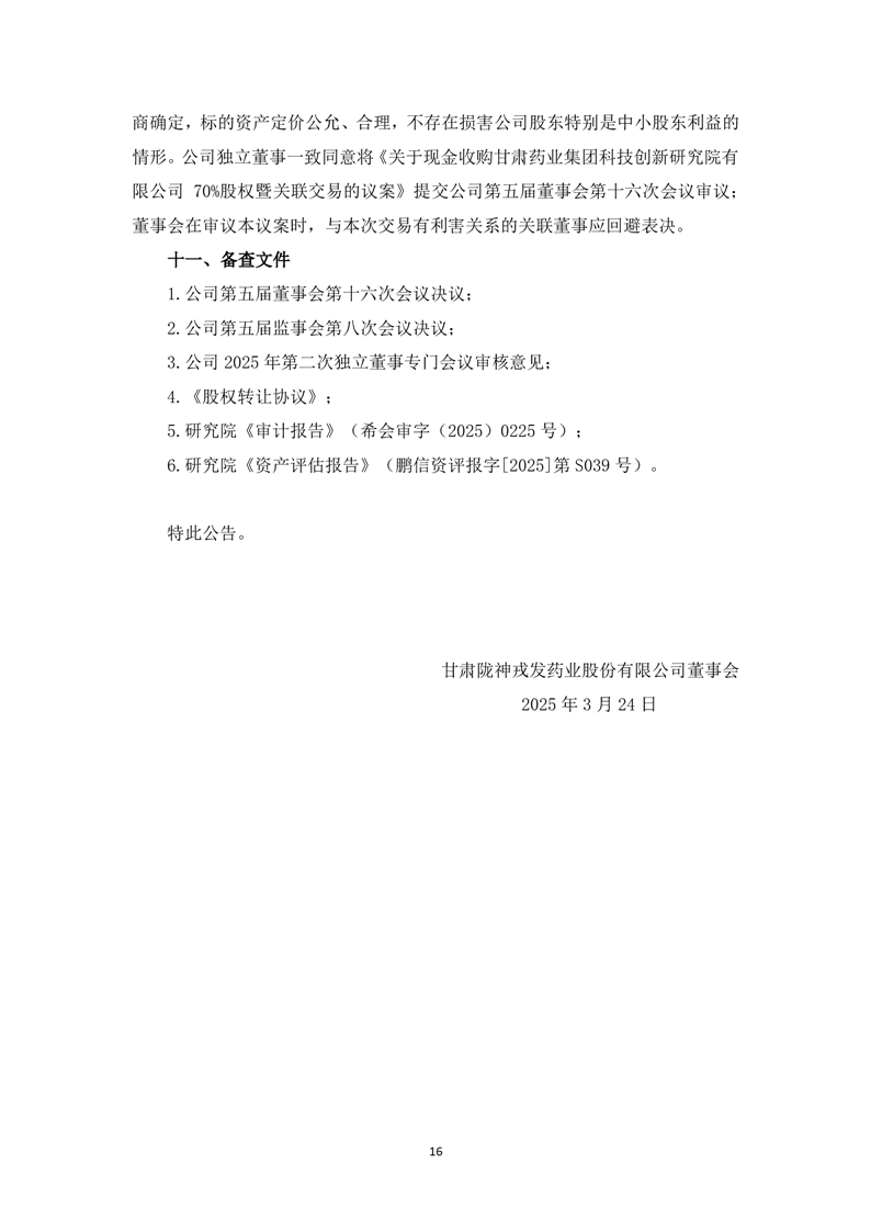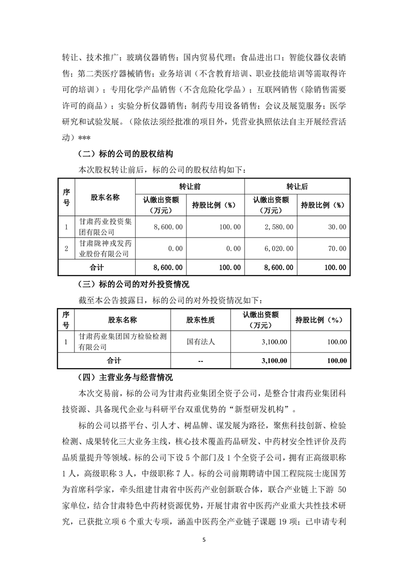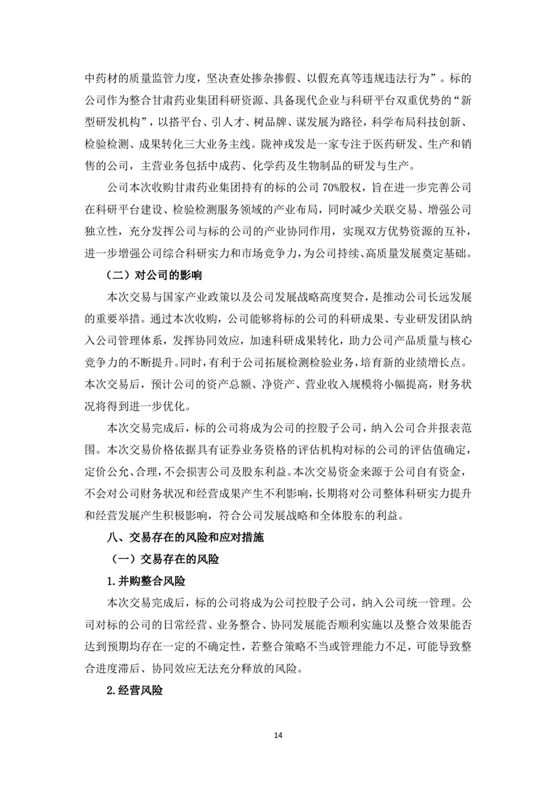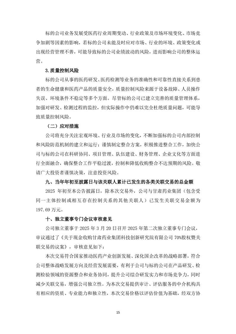 關于現(xiàn)金收購甘肅藥業(yè)集團科技創(chuàng)新研究院有限公司70%股權(quán)暨關聯(lián)交易的公告