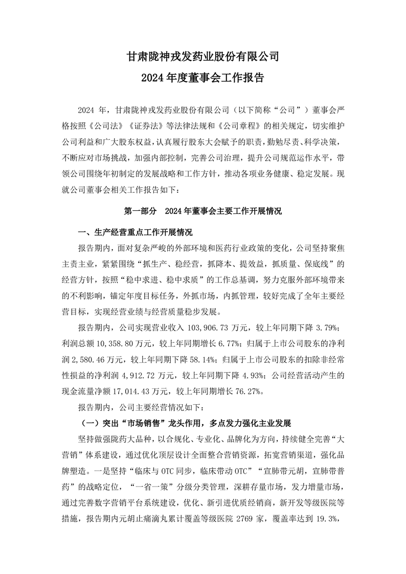2024年度董事會工作報告
