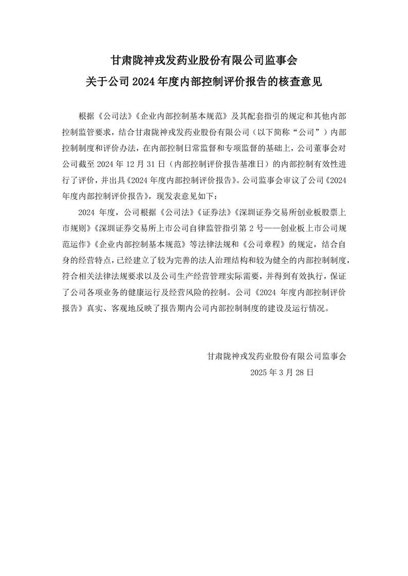 監(jiān)事會關(guān)于公司2024年度內(nèi)部控制評價報告的核查意見