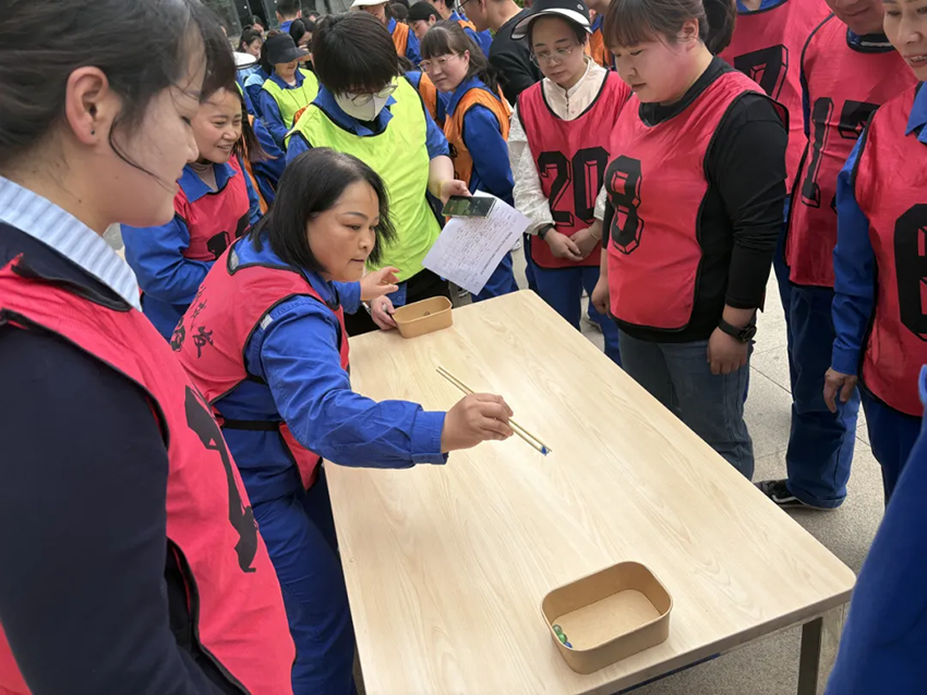 “夾珠大作戰(zhàn)” 看似簡(jiǎn)單,實(shí)則需要極強(qiáng)的專(zhuān)注力和手部控制力。選手們手持筷子,小心翼翼地將珠子從一個(gè)容器夾到另一個(gè)容器。有的職工動(dòng)作嫻熟,快速完成任務(wù);有的則略顯緊張,珠子幾次掉落,但依然不氣餒,堅(jiān)持完成比賽。