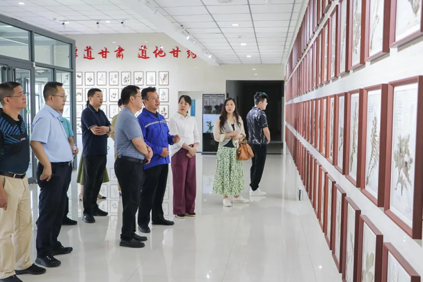 調(diào)研組一行首先在制劑車間大廳參觀了公司精心制作的中藥材標本展示墻,直觀體驗近40年厚重的中醫(yī)藥文明“活化石”,對甘肅省豐富的中藥材資源表現(xiàn)出了濃厚的興趣。