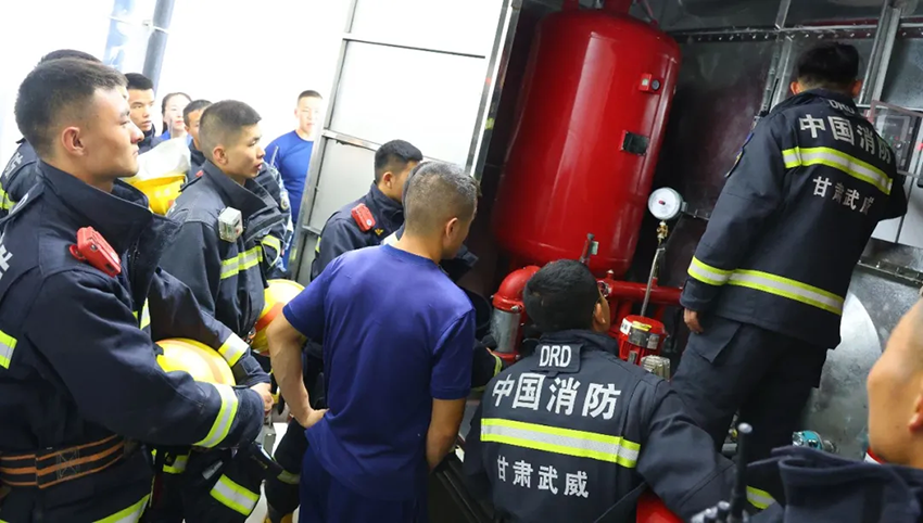 15時(shí)40分,火勢(shì)因泄漏量增大突然升級(jí)——10號(hào)罐底部出液閥燃起火焰,熱輻射導(dǎo)致相鄰罐溫度快速攀升!皢(dòng)一級(jí)應(yīng)急響應(yīng)!”現(xiàn)場(chǎng)總指揮下達(dá)指令:“疏散組立即引導(dǎo)罐區(qū)周邊50米內(nèi)人員撤離至安全區(qū)域;滅火組利用泡沫式滅火器壓制外圍火勢(shì);通訊組聯(lián)系涼州區(qū)消防中隊(duì)請(qǐng)求支援!”