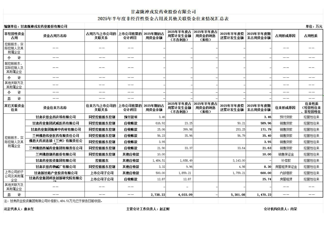 2025年半年度非經(jīng)營(yíng)性資金占用及其他關(guān)聯(lián)資金往來(lái)情況匯總表